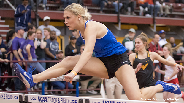 Grove City Christian senior, Calista Manns earned the D2/3 60m hurdles victory due to her 8.67 effort. The Bearcats bound athlete had the day's top overall time when blending in D1 performances.
